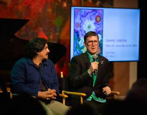 Dr. Jonathan Anderson, Associate Professor of Theology and the Arts at Regent College (Vancouver, BC), moderated a panel discussion of chromophilia with collector Roberta Ahmanson, curator John Silvis, and artists Lynn Aldrich and Daniel Gibson. Dr. Anderson's scholarship explores the interrelations of art history, theology, and religious studies, with a particular focus on modern and contemporary art. He is the author of The Invisibility of Religion in Contemporary Art (2025).